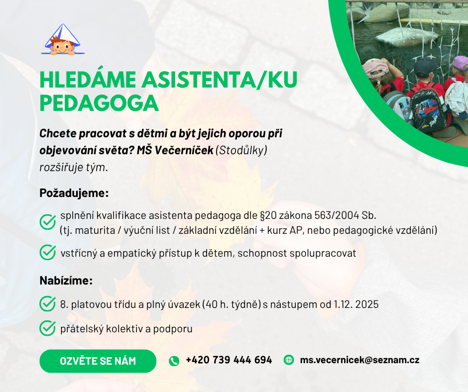 V této sekci najdete aktuální informace o volných pracovních pozicích v naší mateřské škole. Máte zájem stát se součástí našeho týmu? Sledujte tuto stránku – nové nabídky zde pravidelně aktualizujeme. Pro bližší informace nás neváhejte kontaktovat.